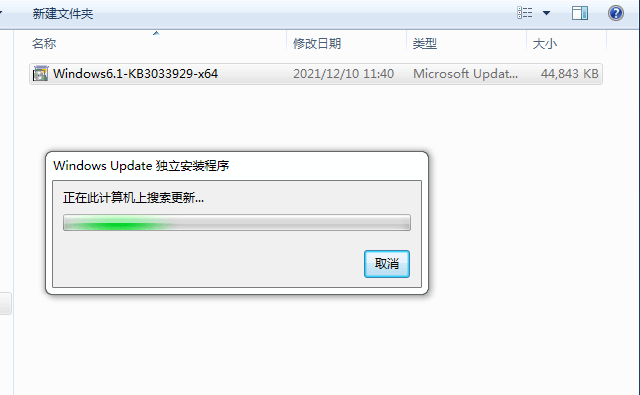 第二步:下载好后,在存放的文件夹里找到补丁包。双击补丁包,等待系统自动检测。